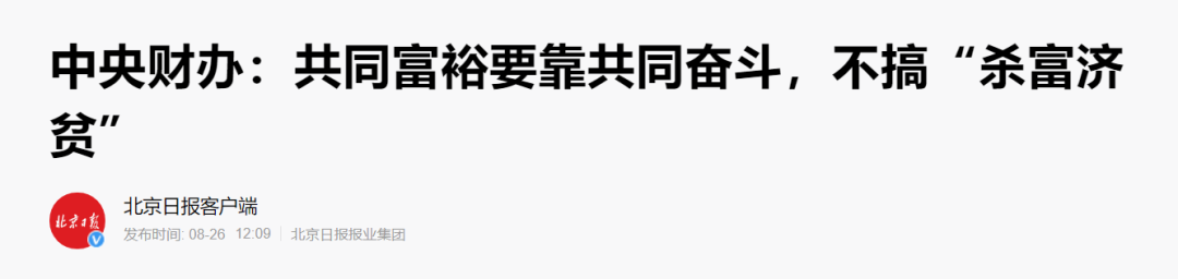 最近中财办副主任韩文秀在答记者问时明确指出,共同富裕是靠共同奋斗,不搞“杀富济贫”,这是中央权威人士对共同富裕的定调。