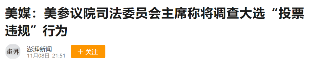 11月9日,参议院司法委员会主席格雷厄姆明确表态要对选举舞弊追查到底,并且拿出50万美元支持川普上诉。