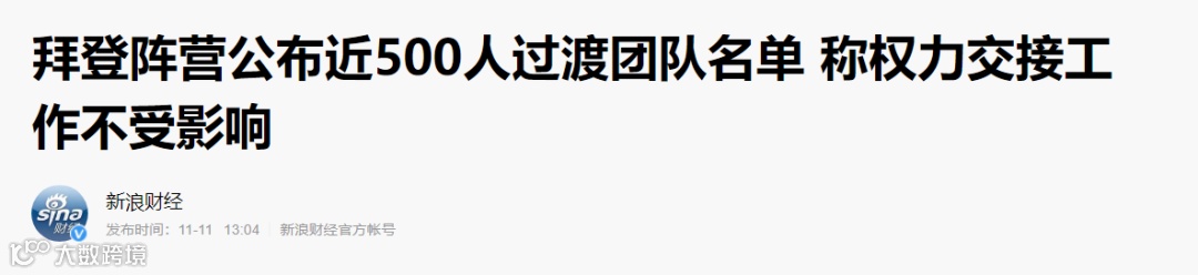 在美国总检察长、司法部长对选举欺诈与违规投票启动调查的同日,拜登建立的过渡政府网站公布了一份近500人的过渡政府成员名单。