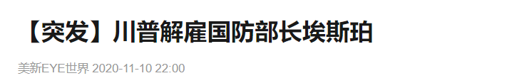 现在是川普与民主党角力的关键时刻,国防部部长这样重要的职位当然不能继续让埃斯伯这个动摇分子继续担任。