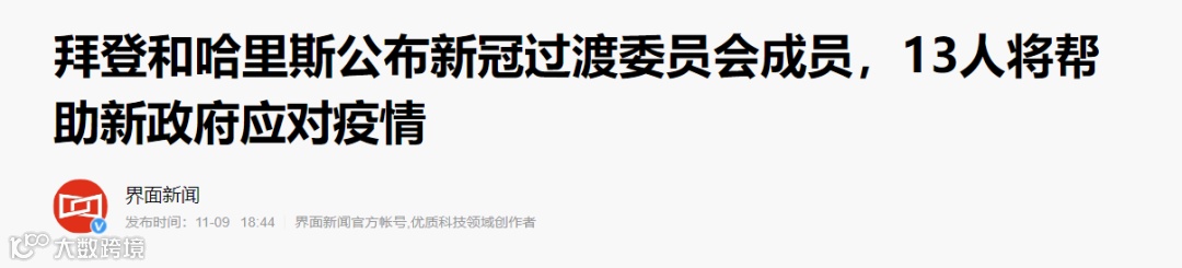 11月10日拜登宣布成立应对新冠疫情的过渡委员会,并且立刻任命了13名成员。