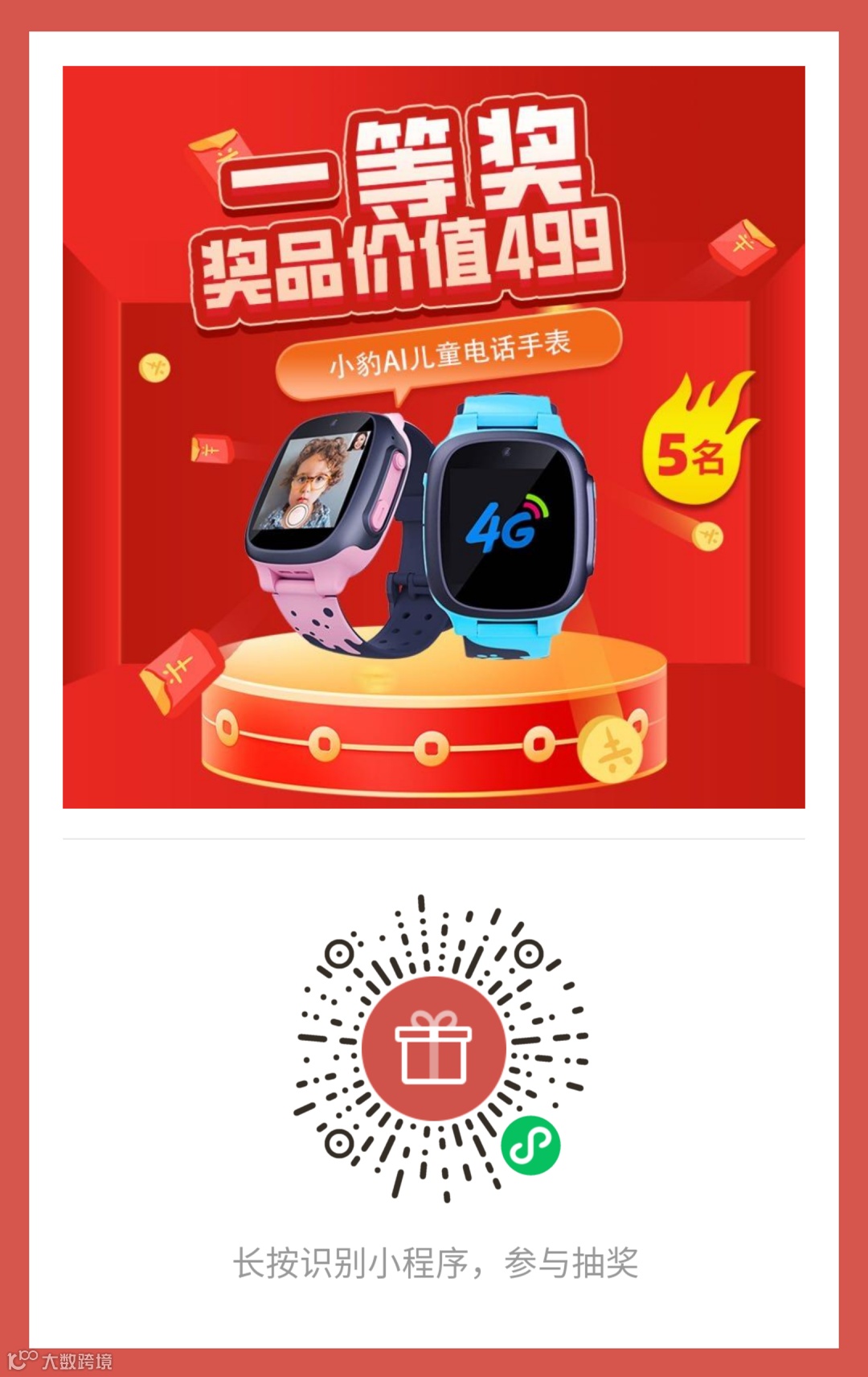一等奖,价值499元的小豹AI儿童手表一台,名额5个