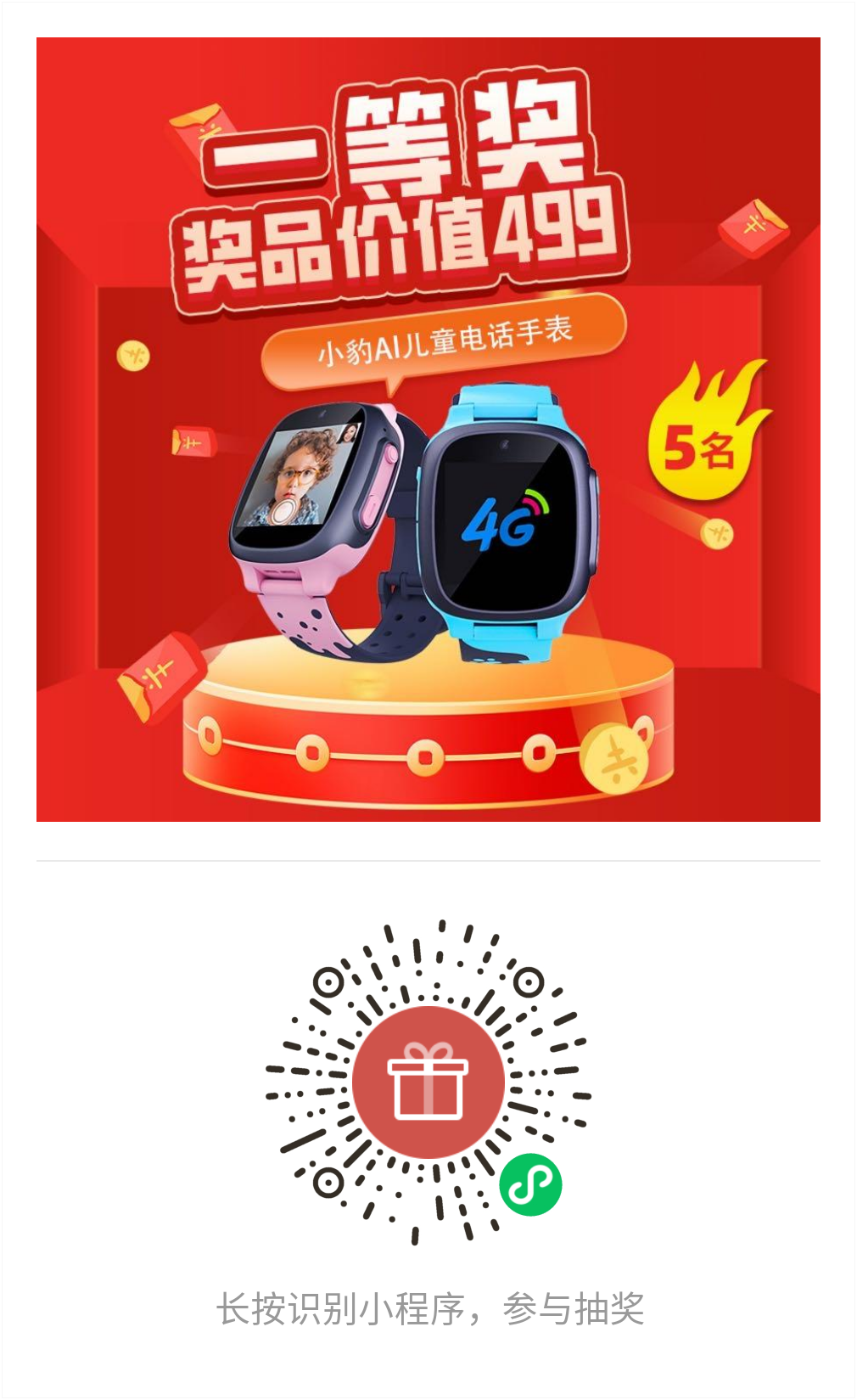 一等奖,价值499元的小豹AI儿童手表一台,名额5个