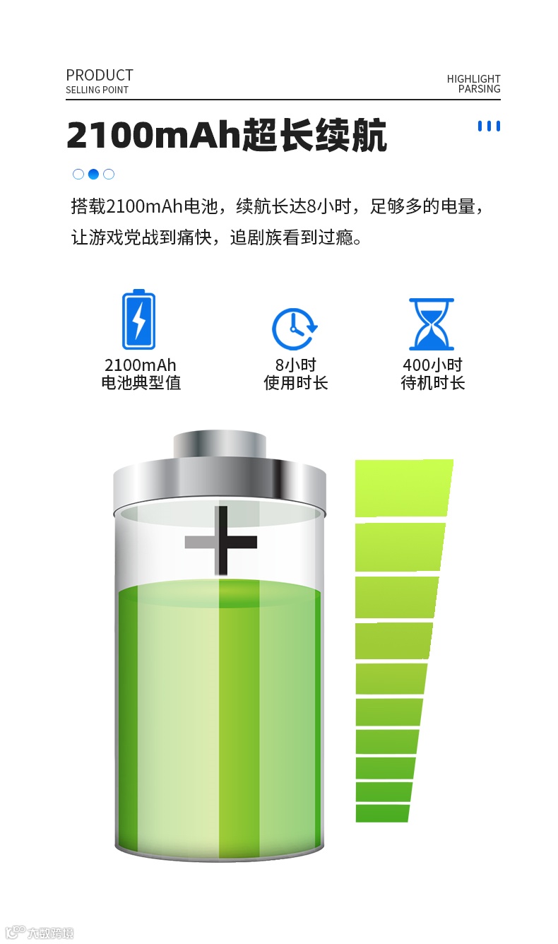 2100毫安乍一听不多,但是我们习惯以手机的标准去衡量电池,要知道我们这款设备仅在发射WIFI的时候才会消耗电量,2100毫安电池可以完美支持持续使用8小时,400小时的超长待机!
