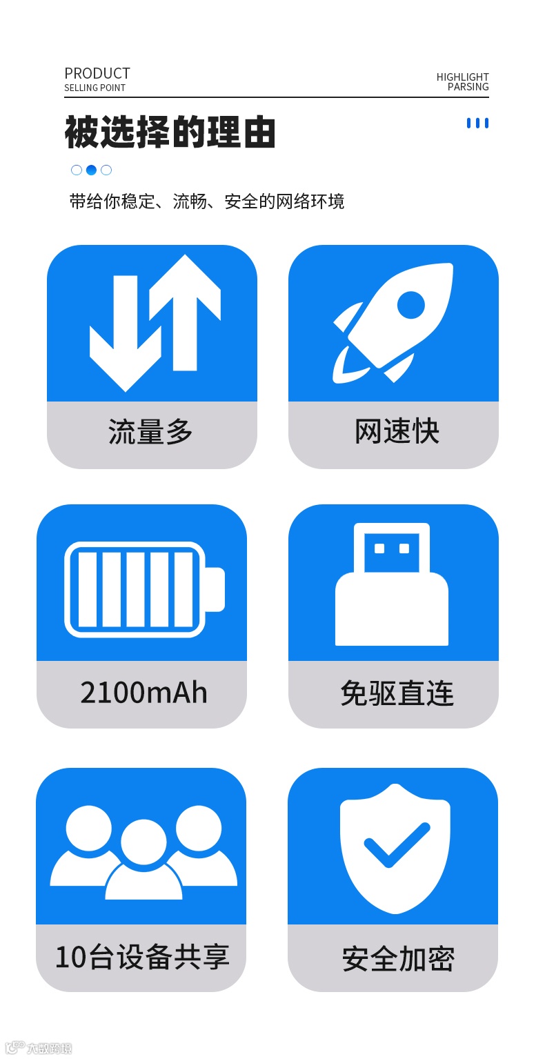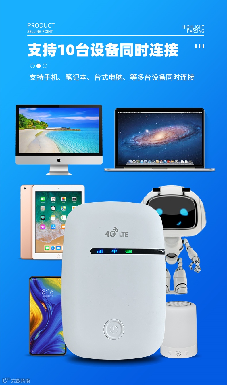 为了提升使用体验,我们特意采用高通全新芯片,支持10台设备连接使用,想象一下,你有一条随身携带的宽带,多有面!