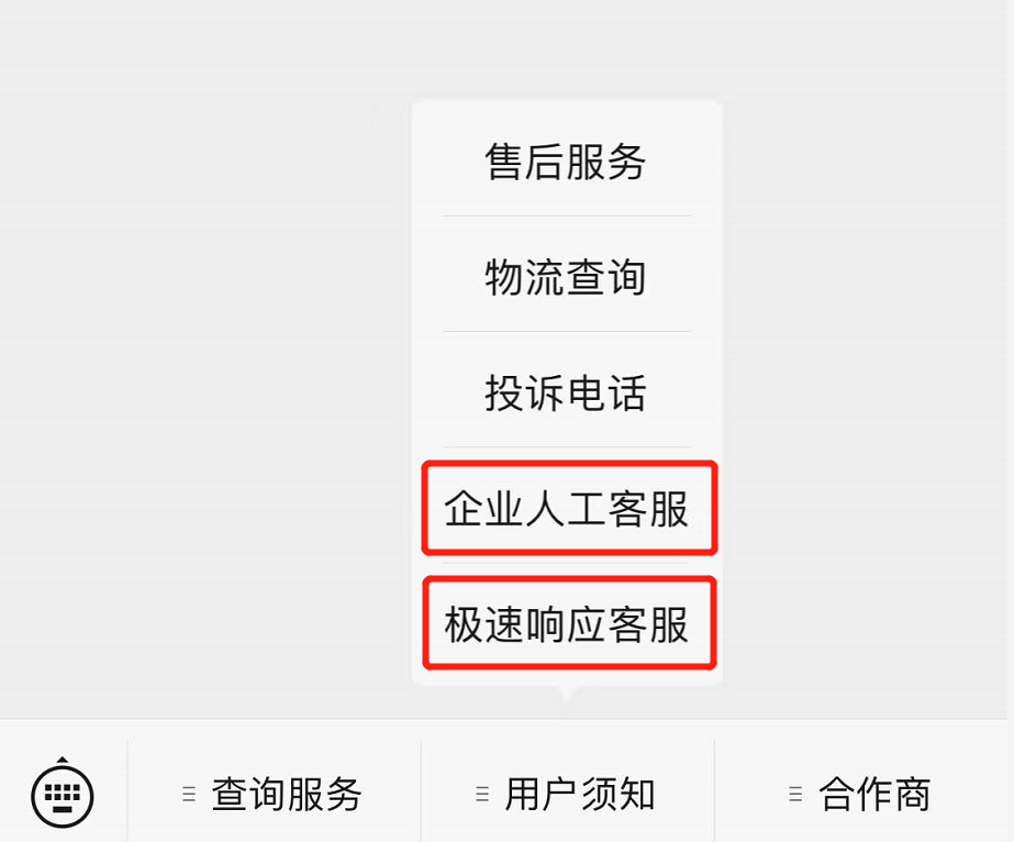 为提升售后处理时效性,我司已设立售后客服直连H5客服以及企业微信客服,您可直接点击公众号中间菜单栏的“极速响应客服”或添加“企业人工客服”进行售后解决