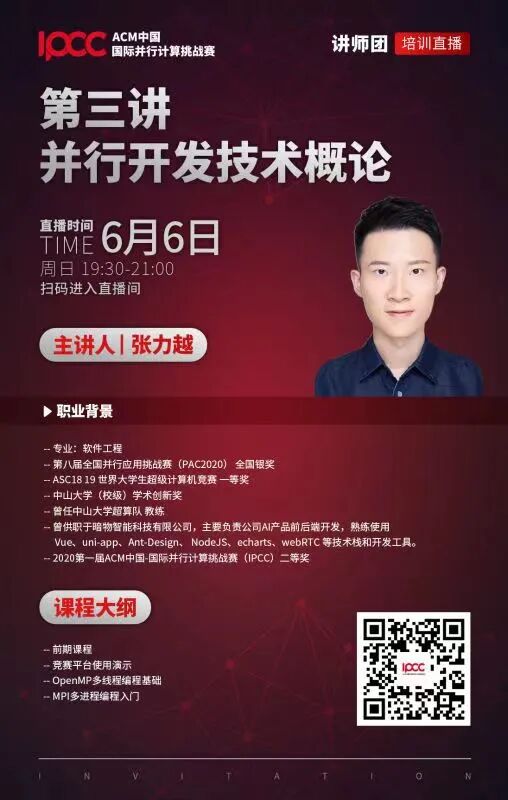 本届大赛邀请往届获奖选手(不局限于IPCC大赛的获奖者)组成讲师团,制定全新的课程规划,为IPCC参赛者、超算行业从业者、爱好者开展直播培训,并安排现场实操内容,累计人气20000+。