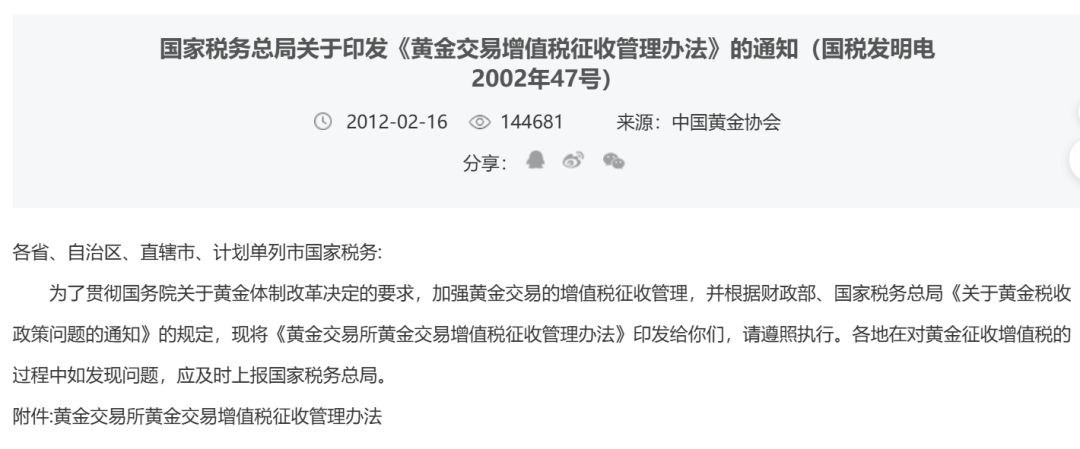 然而,针对从交易所购买实物黄金的情况,可能会面临增值税的调整。
