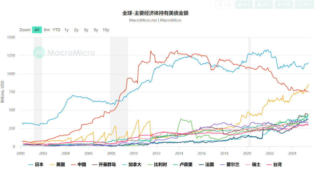 截至 2024年底,外国投资者持有美国国债规模已达 8.7 万亿美元(数据来源:美国财政部国际资本流动报告);
