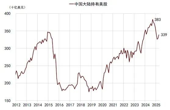 我们再对比下图,中国大陆资金持有美股规模约3400亿美元,从去年20249月份开始,明显有回流的现象,所以我们可以看到陆续海外的资金开始回归大A和恒生,这也印证了去年9月份大A的走势;