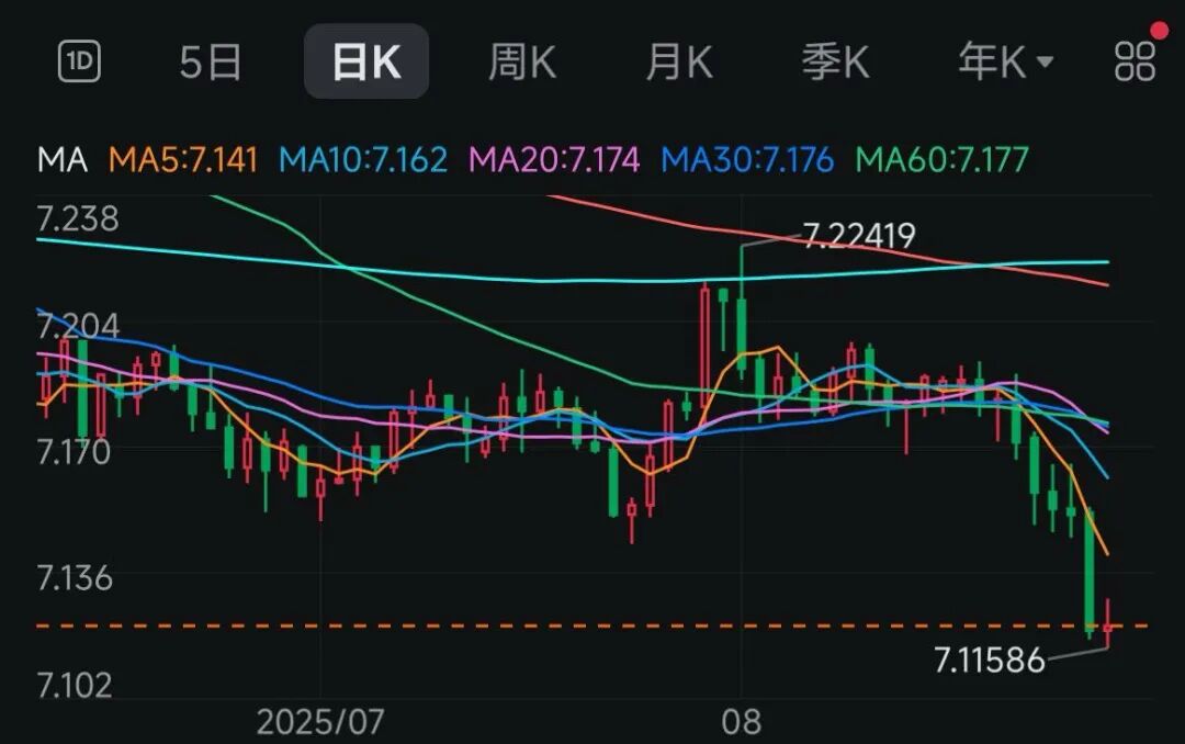 无独有偶,近期的港元也是大涨;我们看看下图,港元兑美元从七月份的7.85港币兑1美元,到了8月份变成了要7.78港币兑1美元;