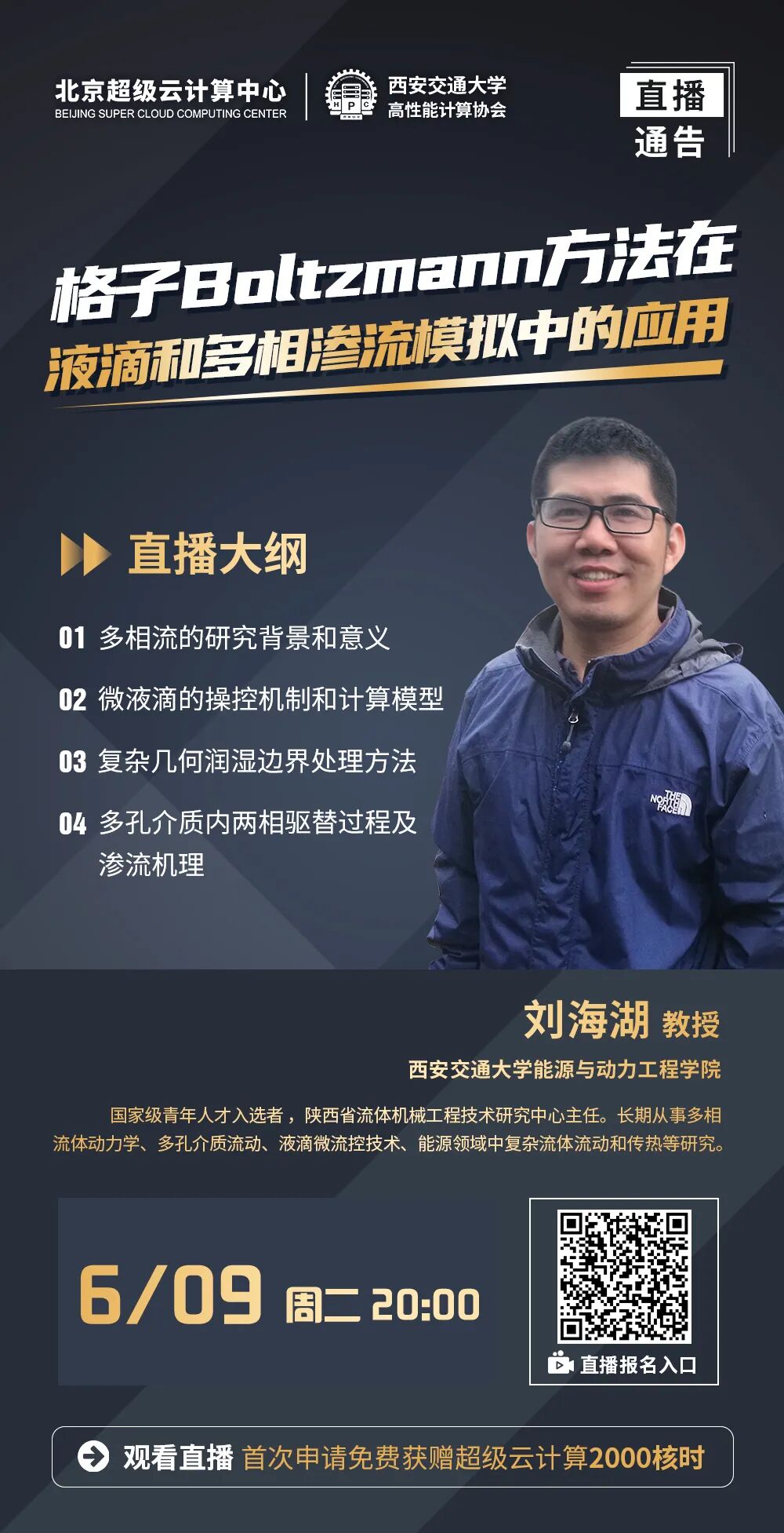 直播通告丨格子Boltzmann方法及其在液滴和多相渗流模拟中的应用(6月9日 20:00)