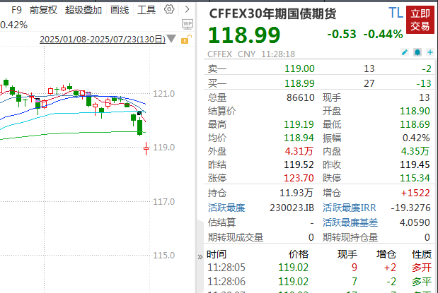 30年期国债活跃券的收益率为1.925%,10年期国债活跃券的收益率为1.71%。而在今年7月初,10年期国债活跃券的收益率为1.6420%,30年期国债活跃券的收益率为1.85%。