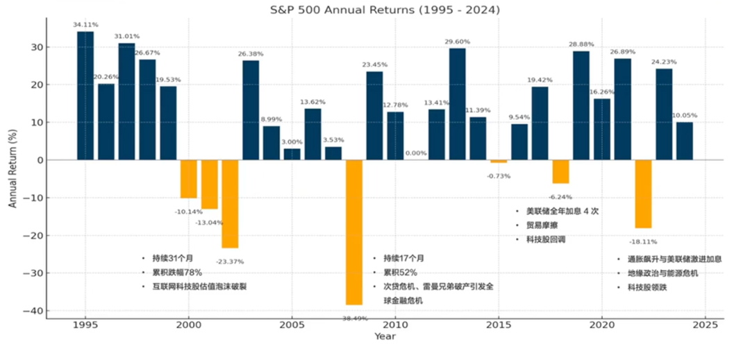 标普500指数自诞生以来,经历了过往60多年的各种“黑天鹅”事件,远的不说,我们就以近20年来看; -