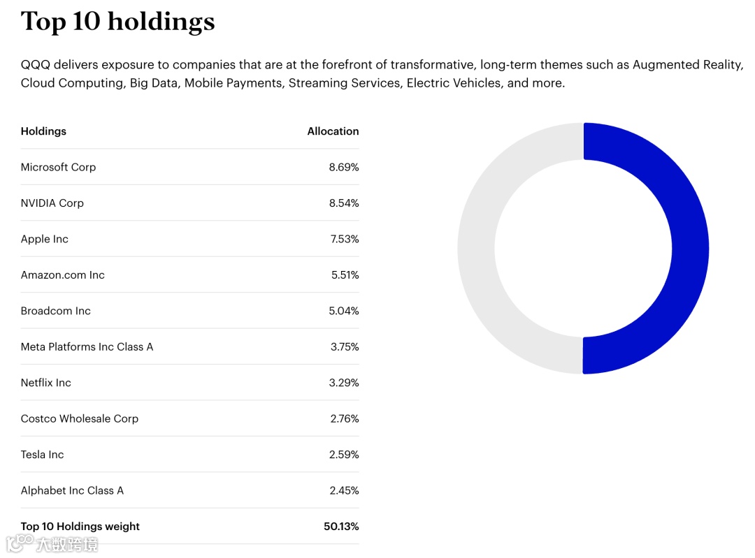 这些公司的权重总和超过了指数的一半,体现了它们在纳斯达克100指数中的重要地位。