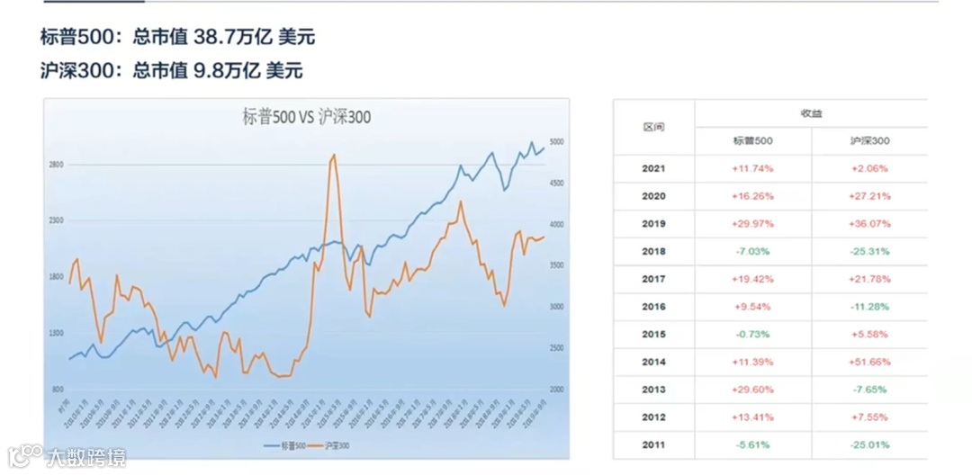 最后,我们再对比一下标普500&沪深300指数,2011年-2021年区间的表现,可见,普通人要选择投资躺赢的最好方式,就是选择标普500指数进行定投,