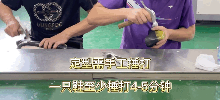 每双鞋70%-50%都需手工完成(超500道工序)。