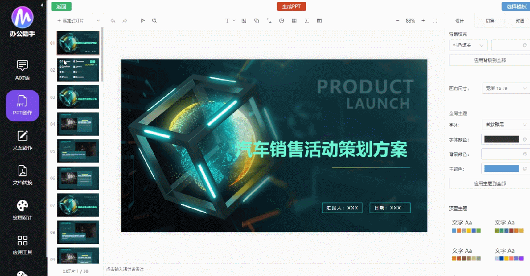 你输入一个主题,它就能帮你写大纲、出内容、自动排版,伸个懒腰的功夫,一份高颜值、高质量的PPT就出来了。