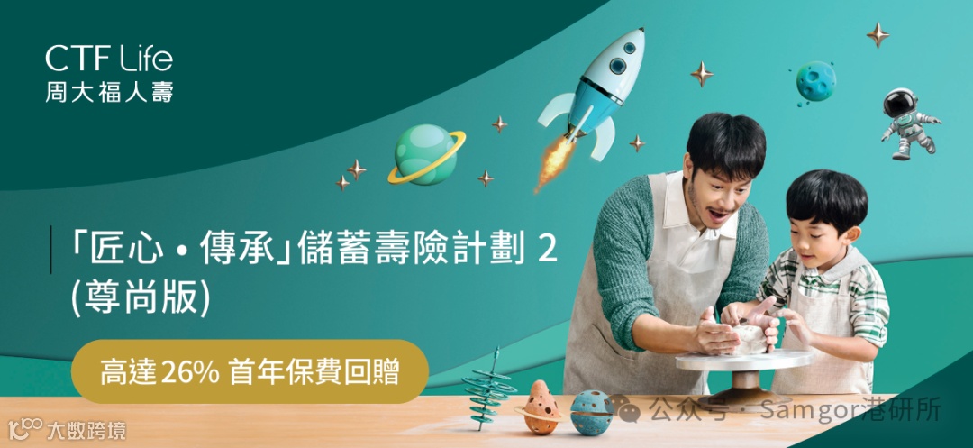 在推广期内成功投保【匠心・传承】储蓄寿险计划 2(尊尚版)(5 年保费缴付年期),可享高达 26% 首年保费回赠: