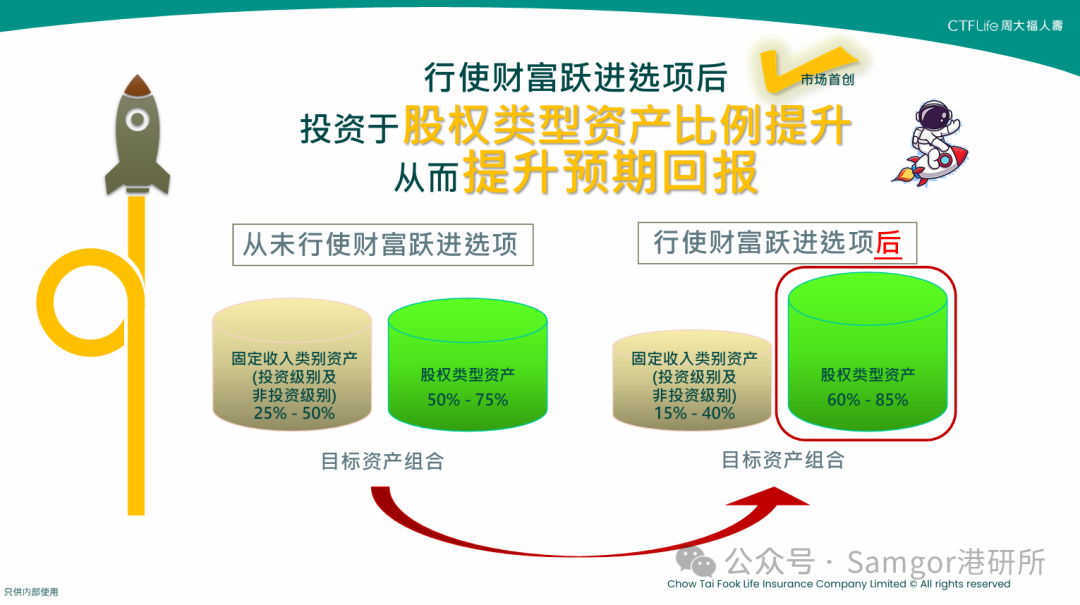 【匠心传承2】在第一版的【财富增值调配选项】之上,新增【财富跃进选项】,提升权益类资产比例、预期回报同步提升!
