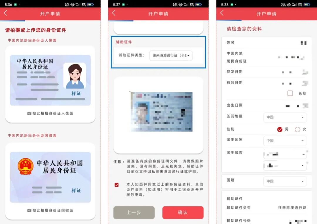 上传身份证、港澳通行证/护照后确认-检查资料信息无误点击下一步