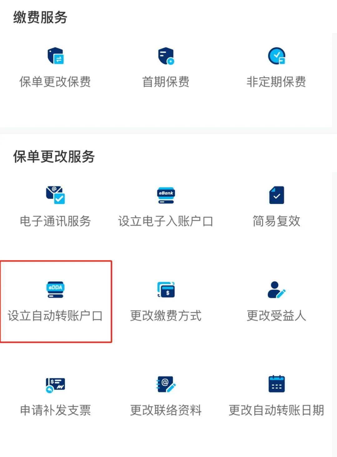 2. 选择“设立自动转账户口”。