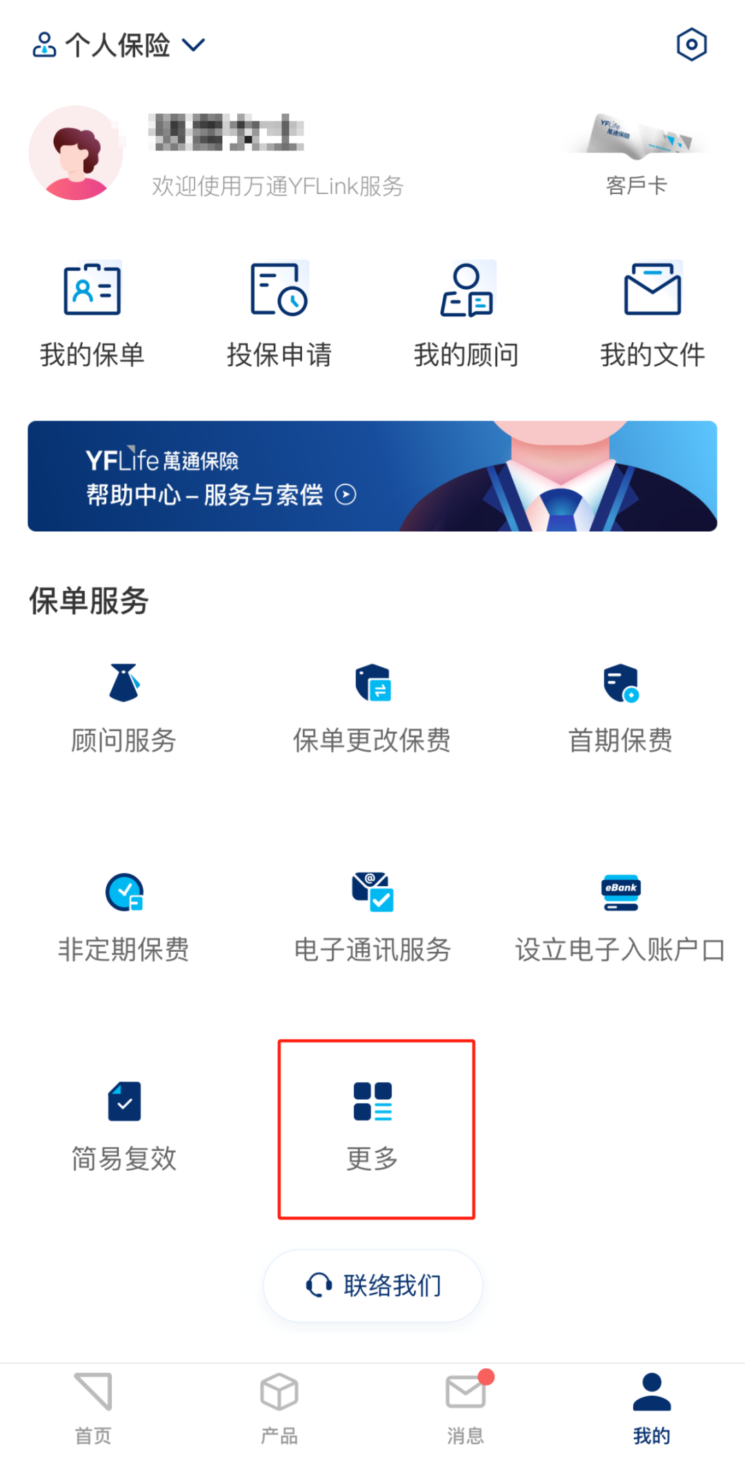 除「YFLink」APP外,您还可以通过万T保险微信公众号登入保单服务,使用以下保单管理项目,包括: