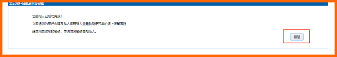 (9)重置用户名称、密码完成提交后,点击关闭页面。