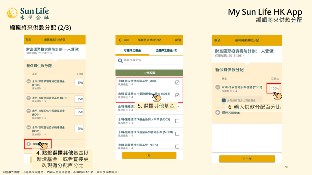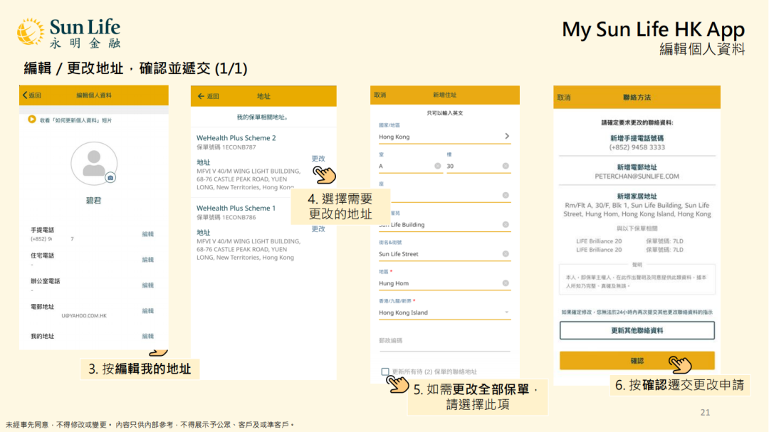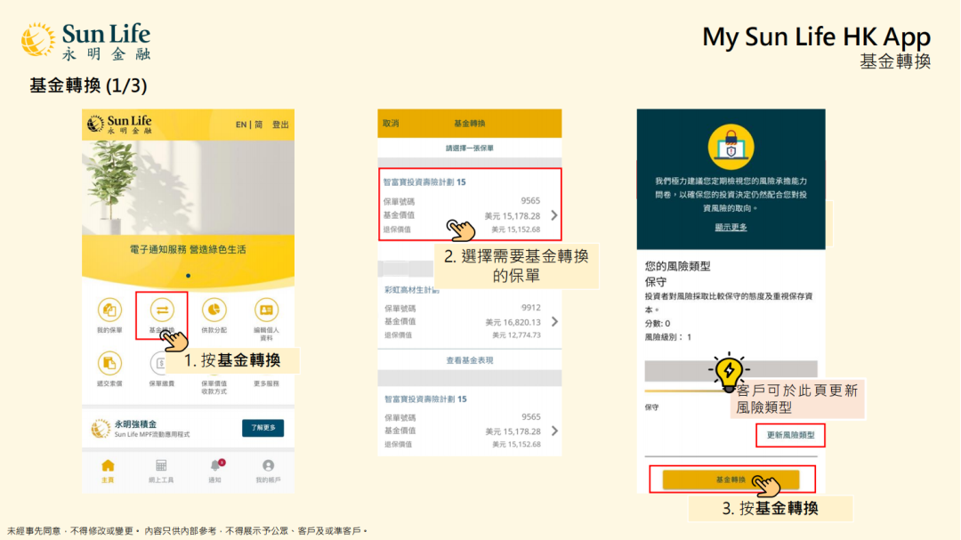 我的Sun Life HK更新保单资料,管理基金及保单价值,保单缴费,及提交索赔:
