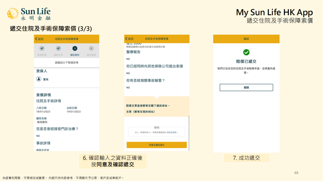 ⑦ 提交意外及住院及手术保障索赔
