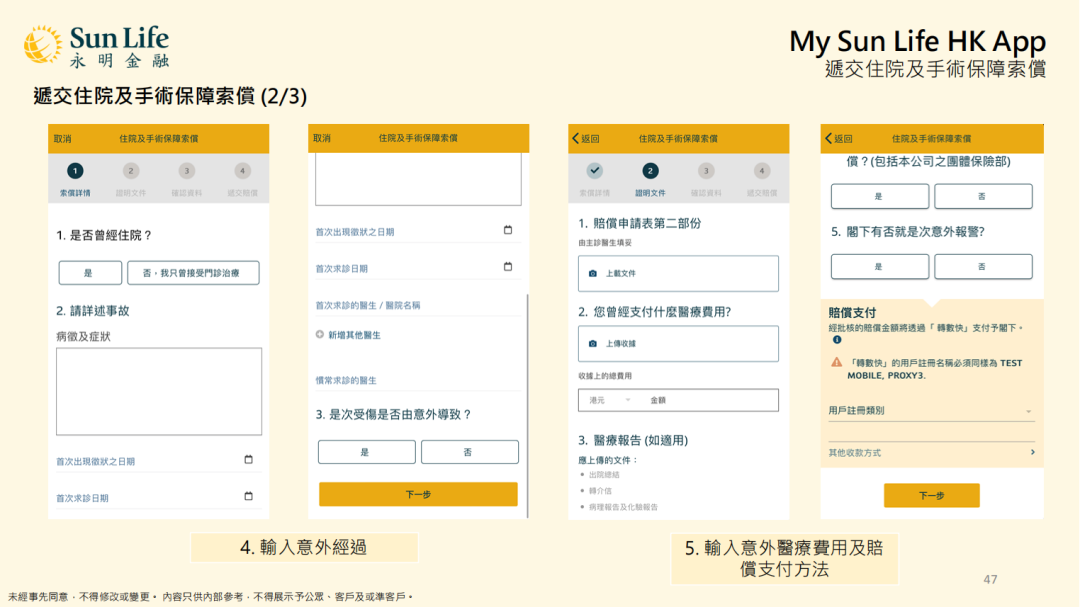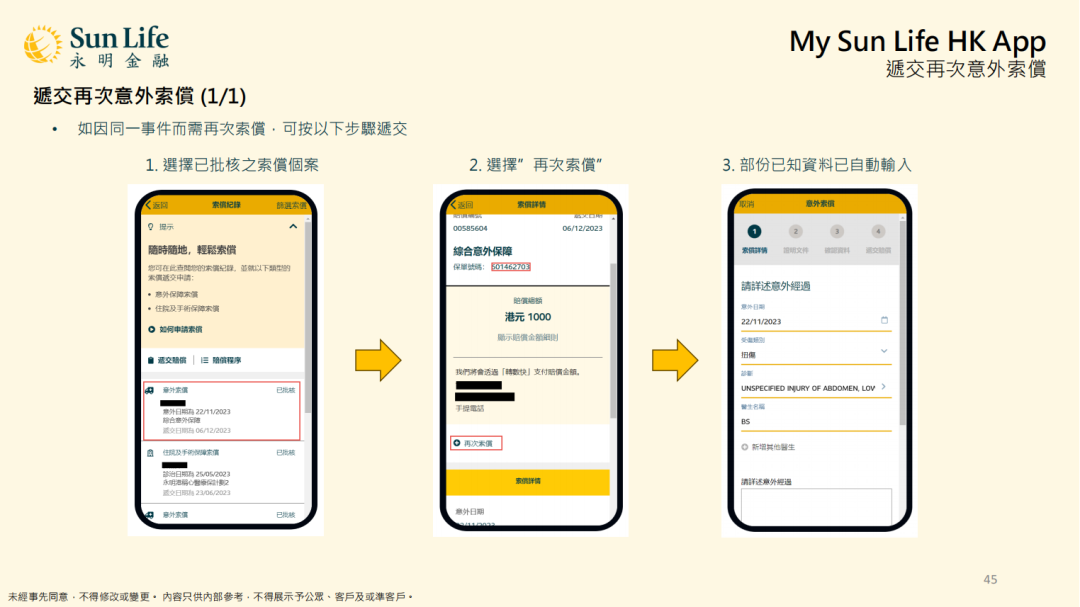 提交意外及住院及手术保障索赔: