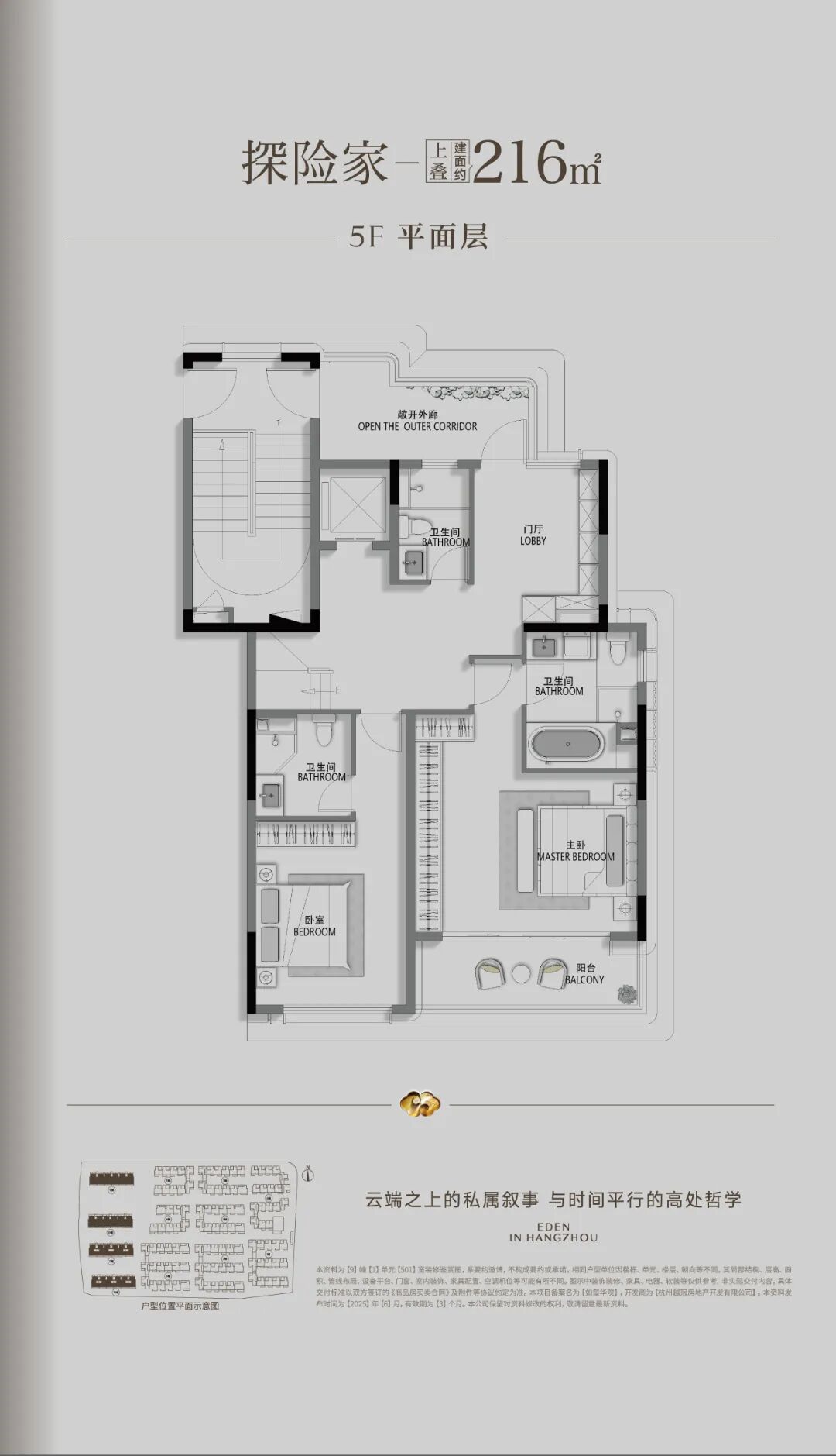 直线距运河约200米,距拱宸桥约2公里,越秀顶级的“樾系”产品系,一共只有98套纯叠墅,户型约230-320㎡。