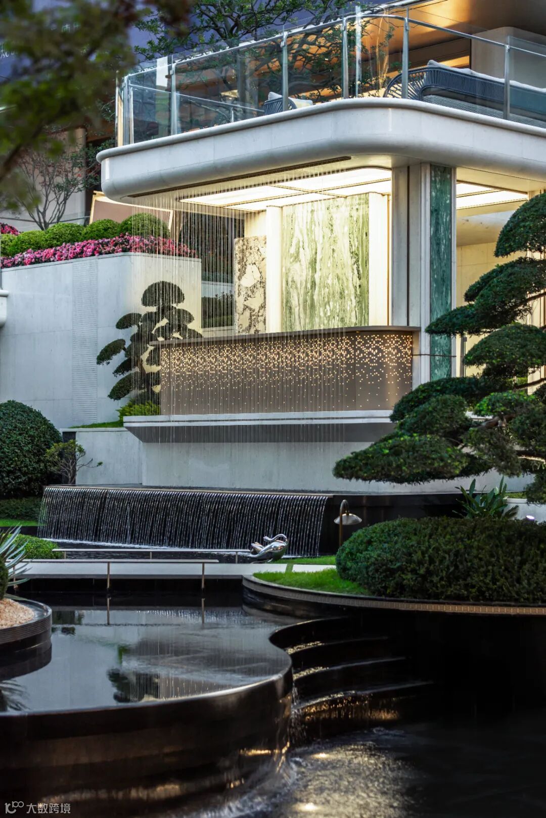 它曲水流觞,绕园而行,直至落差约12米的三层下沉式庭院,化作层层跌落的瀑布,刚柔并济,气象万千。