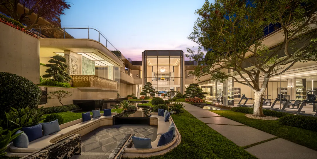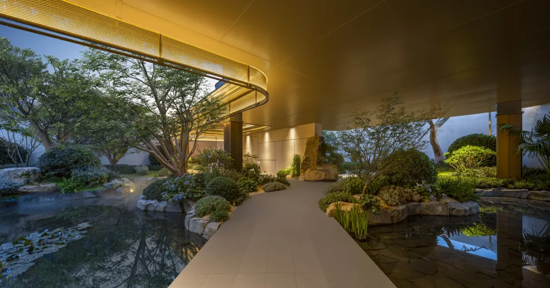 太行金石叠山理水,潘多拉奢石铺陈归家甬道,黑松、枫林掩映曲径,方寸间凝练东方园林的筋骨与气韵。