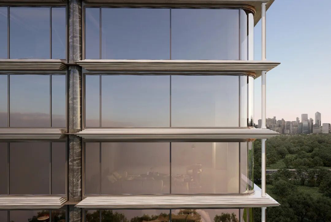 大家·咏印明庐延续“金边玉幕”,以古铜色线条勾勒搭配中透玻璃,复刻艺术画框270度大视野让窗外景色成为家家户户的室内装饰。