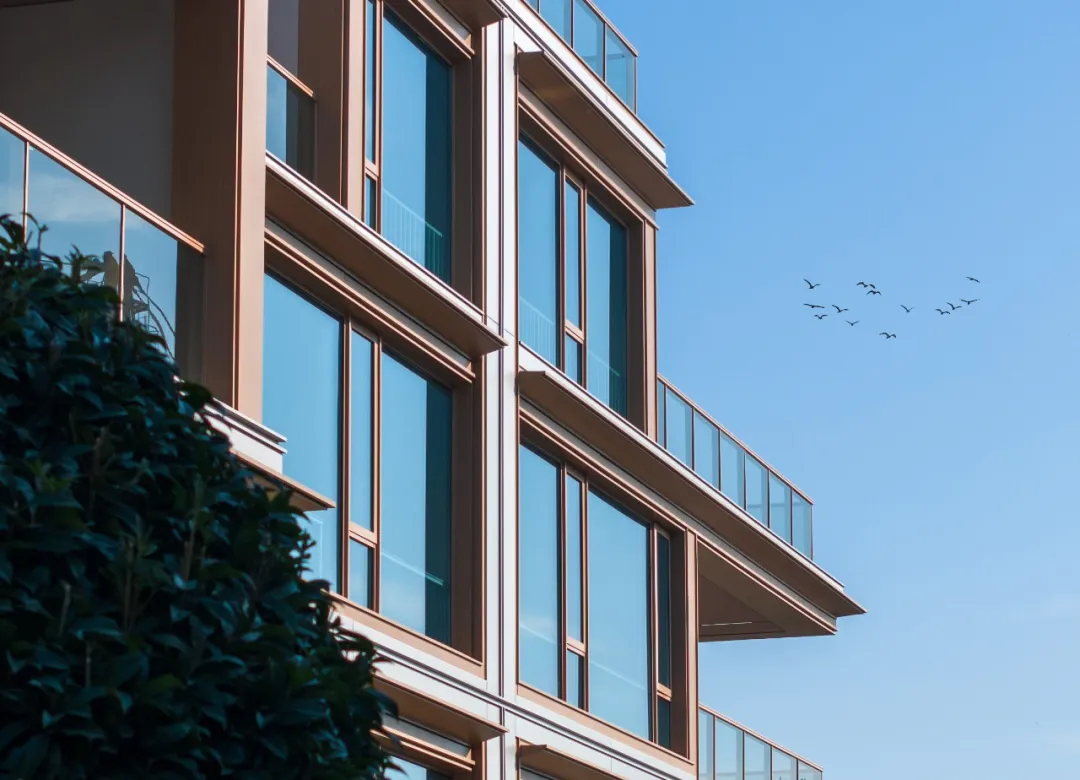 桐昆·云上府外立面(除露台以外),采用了大量断桥铝合金三玻两腔玻璃,现代感十足,又兼具充分采光。