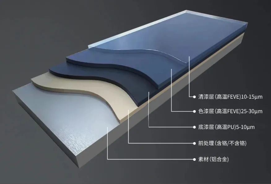 采用加工难度更高,造价更贵的3系铝板。3.0mm足厚铝板,远超市场常规(常规2.5mm厚板,实际规格甚至达不到2.35mm)。铝板表层选用美国进口PPG氟碳漆,与普通烤漆对比大大提高了抗氧化、抗酸雨、抗紫外线等性能,不仅节能环保,其皓月银、香槟金的色泽,让建筑立面更显奢华质感,即使经过数十载,仍历久弥新。