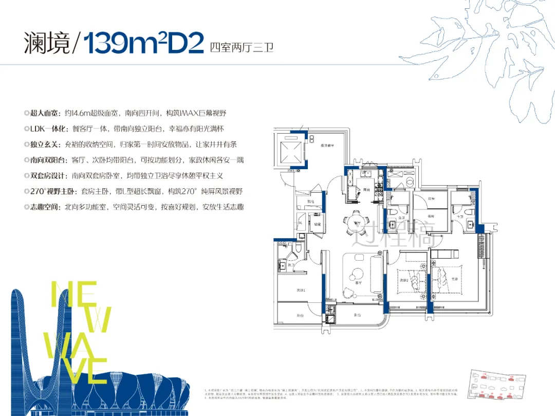 项目建面约139㎡四房,更是一款「前所未见」的139㎡。一梯一户 + 双套房 + 四房三卫 + 储藏室——每一项单拎出来都是爆点,而锦上观澜的139㎡全部具备。