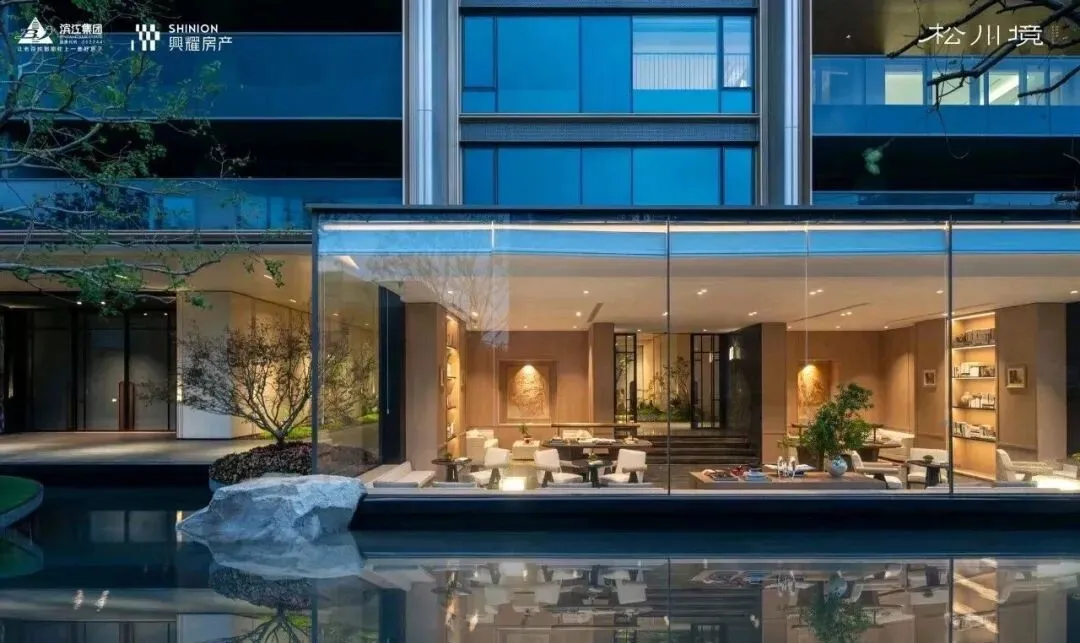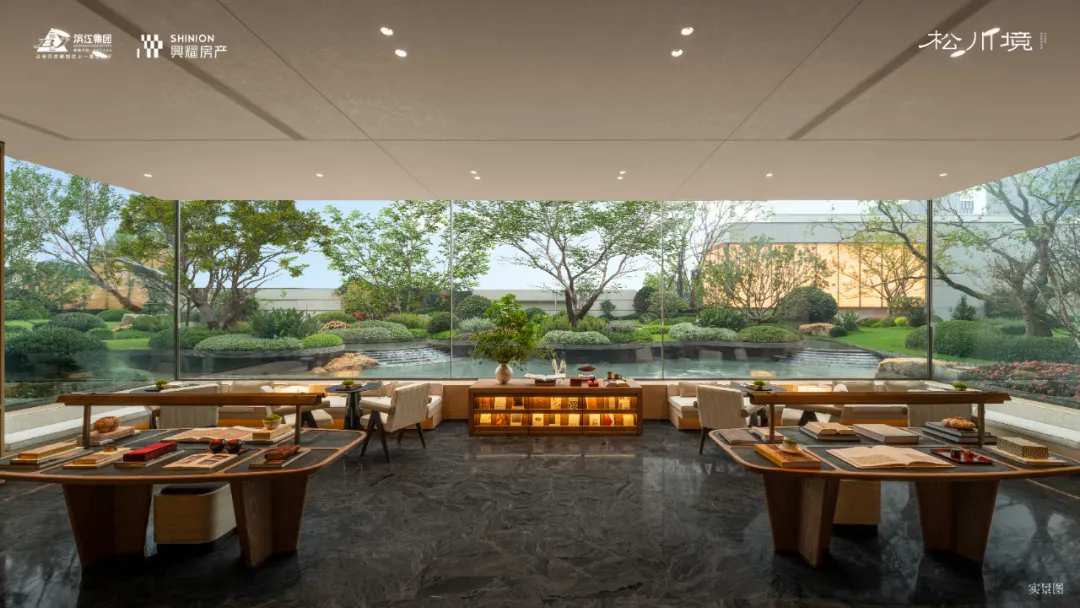 约3300平方米的中央景观,下沉式庭院与双水院景观错落有致,将《松阁观潮图》、《溪山行旅图》、《山亭文会图》三幅宋代古画,巧妙融入松川境的立体山水之中。高层与排屋区之间,一条长约210米的中轴景观横贯东西,串联起「松川十一境」的雅致画卷。该项目景观设计由北京顺景园林执笔。