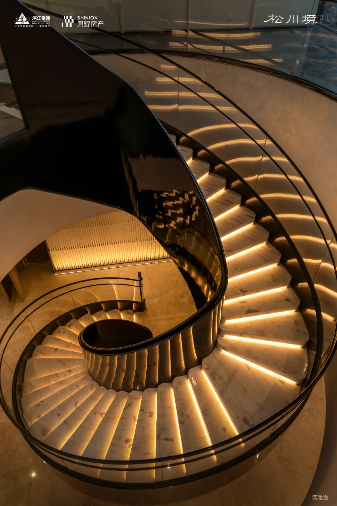 除了地上归家大堂外,依据车行归家的生活习惯,增设奢阔穹顶车马厅,双动线礼序;虽是地下空间,但处处借景自然,光影流转,皆是东方园林的当代转译。