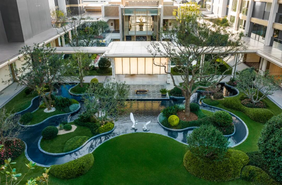 杭序府汲取杭州江南诗意精髓,寻源九溪烟树的自然与人文底蕴,以立体的社区底盘和城市溪谷的景观设计,建立多层多维的园林空间,尽得自然山水真意。