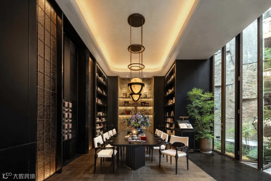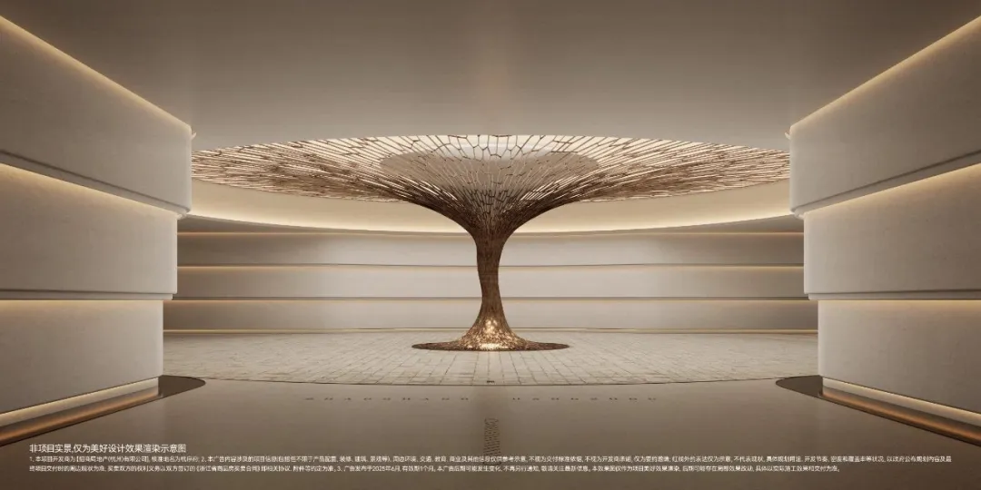 除了地上归家大堂外,依据车行归家的生活习惯,增设奢阔穹顶车马厅,双动线礼序;虽是地下空间,但处处借景自然,光影流转,皆是东方园林的当代转译。
