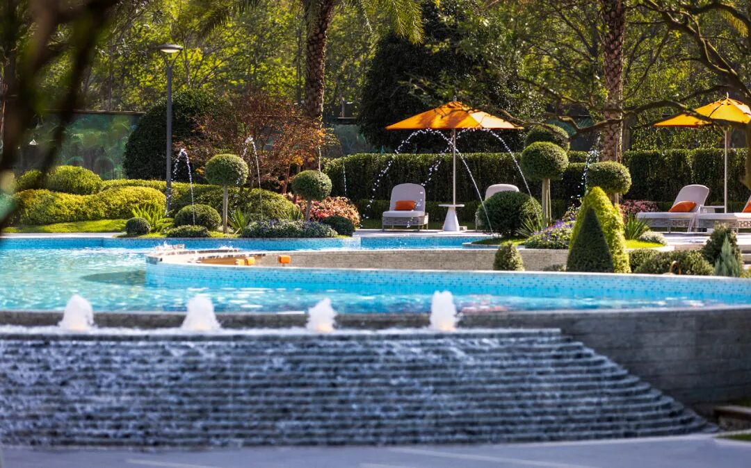 它曲水流觞,绕园而行,直至落差约12米的三层下沉式庭院,化作层层跌落的瀑布,刚柔并济,气象万千。