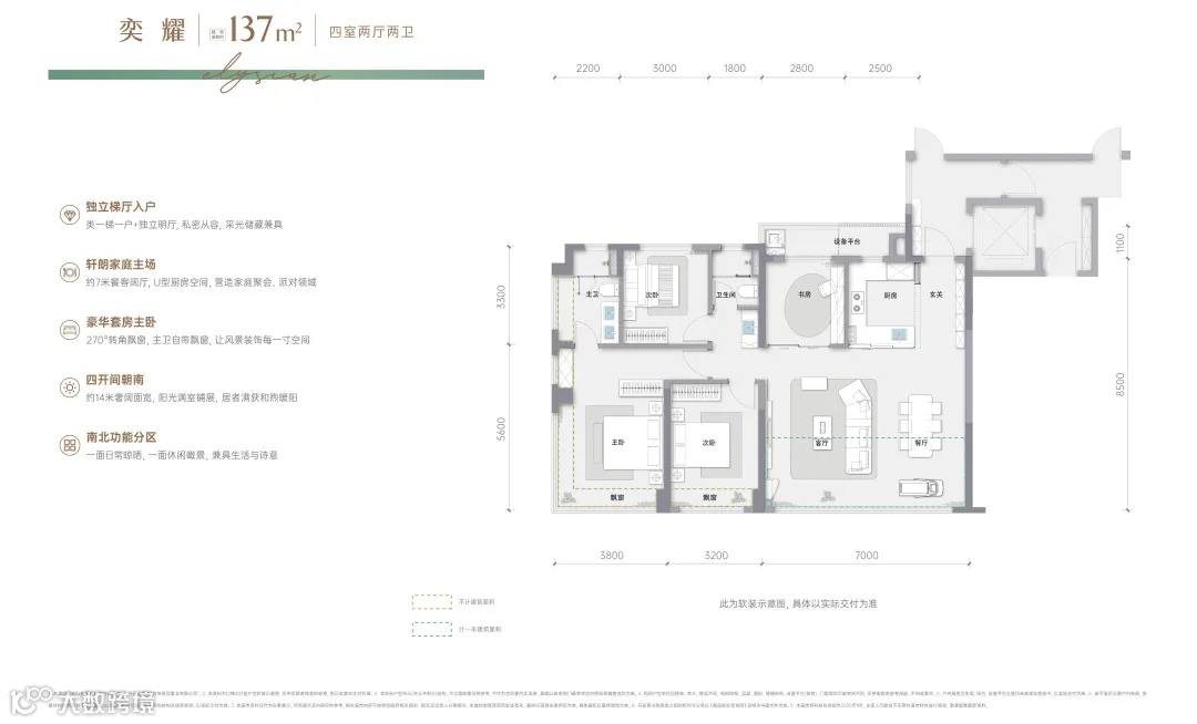 项目打造建面约123-173㎡的主力户型。该项目在户型打造上也有诸多突破,如建筑面积约139㎡户型采用约6.8米全景横厅,采光极佳;约21㎡主卧带步入式衣帽间,搭配270°转角飘窗,更奢华明亮;双洄游动线体系既保证隐私又创造多元互动场景。