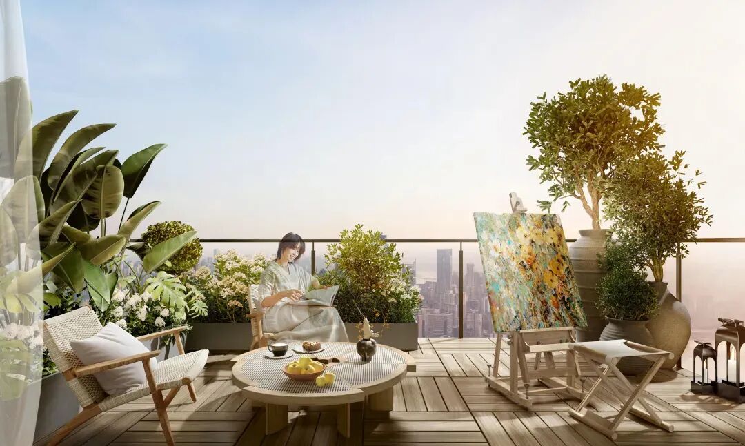 约6米挑高空中花园,构筑约18㎡敞阔空间,匹配客户需求可联动空间形成多元场景定制。南向露台户型连通客厅可打造空中花园,形成家的第二会客厅;北向露台户型连通餐厨空间,可打造成花园餐吧。在这里,休闲观景、户外烧烤,娱乐桌游......一边享受着微风与花香,一边感受着生活的美好与宁静。