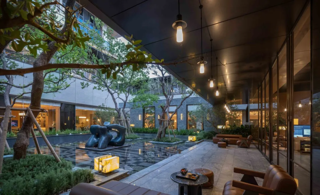 内外交融的会所式庭院,下沉式艺术社交空间,拓宽生活的边界,形成流动的无界会客厅。