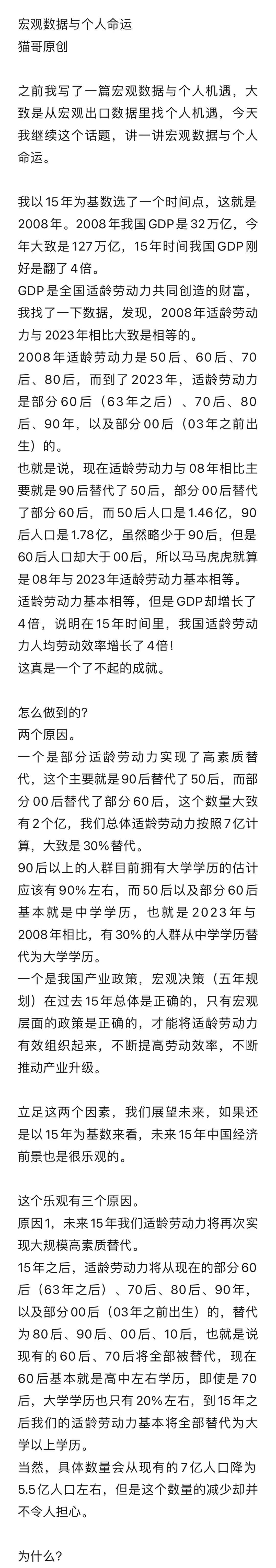 ——过去15年国家GDP增长了4倍,但城镇居民收入却只增长了3.2倍。过去收入能够跑赢GDP增速的人具备什么特质?我们又如何在宏观数据中找到个人机遇?