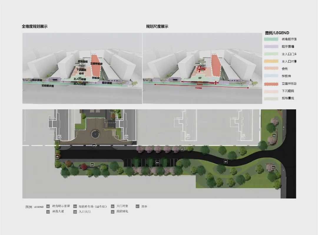 从西南角市政道路开始打造示范区氛围,设置景墙以及营销物料进行路线指引。