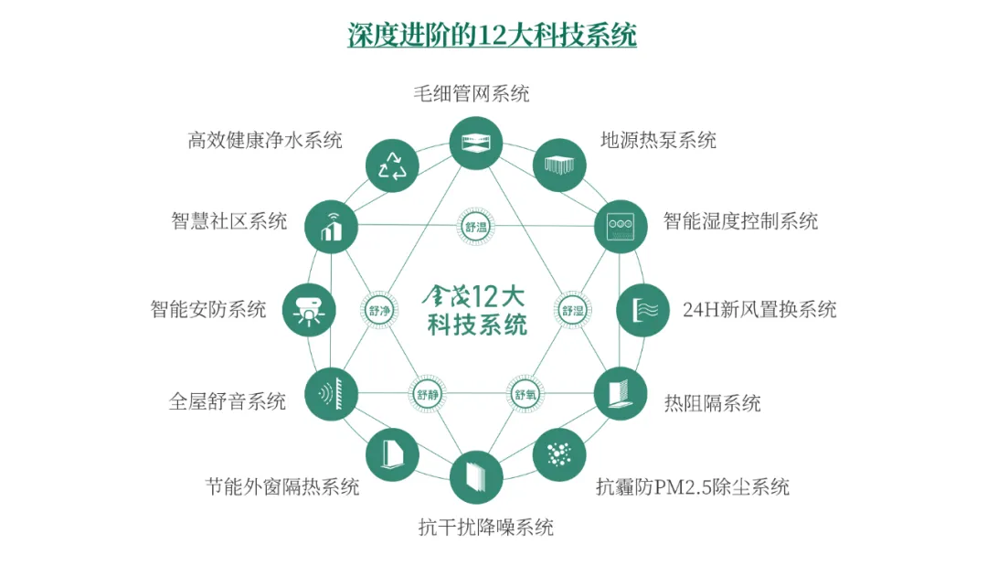 作为市场的“开先河者”,金茂的底气源于——无法被复制的健康科技住宅营造方法论。金茂通过12大绿金科技系统+新四代宅超级产品力,将科技深度植入建筑肌理。从阳光、空气、水、声音、湿度、温度六大生命要素出发,构建"五舒健康微气候",将“舒适”变成无需刻意追求的日常。