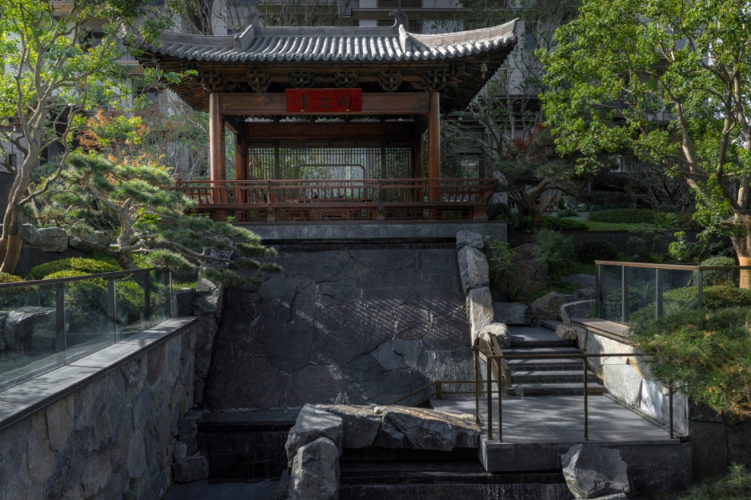 约2400㎡大面积水系,这样的规模和比例全市罕见。整个景观以“山、水、院”的意象自然串联,还原“曲水流觞”的意境。
